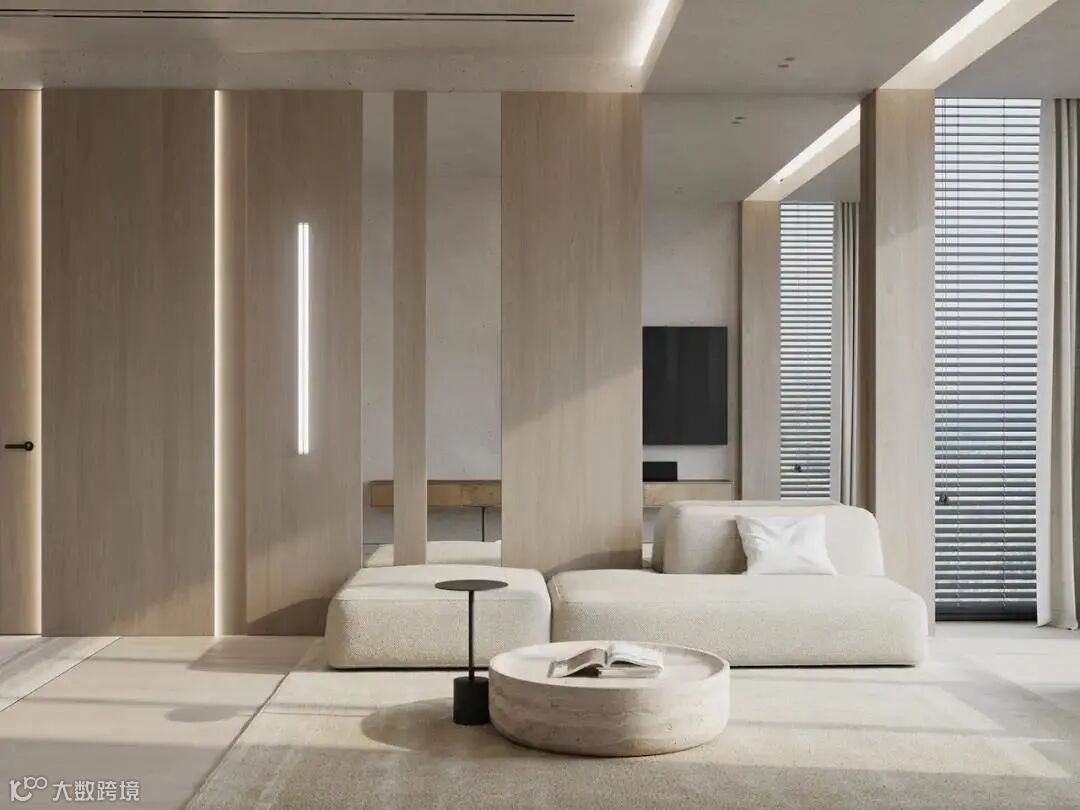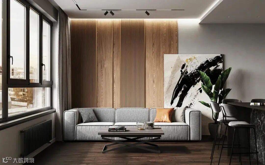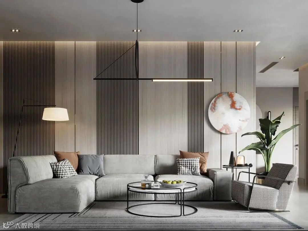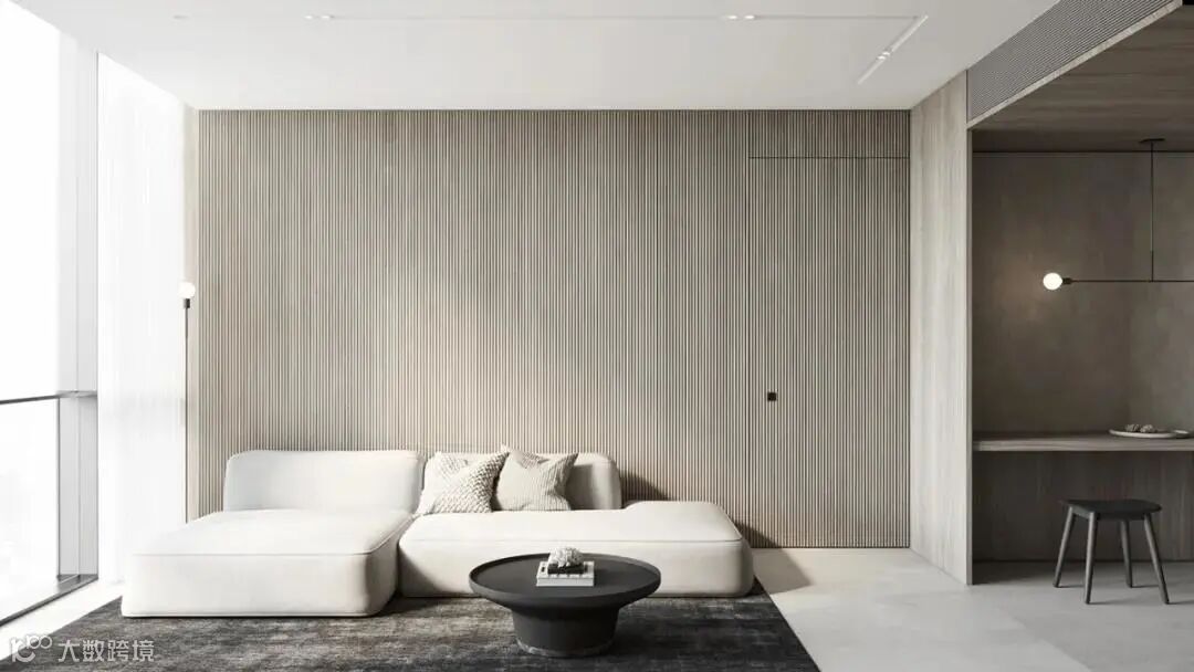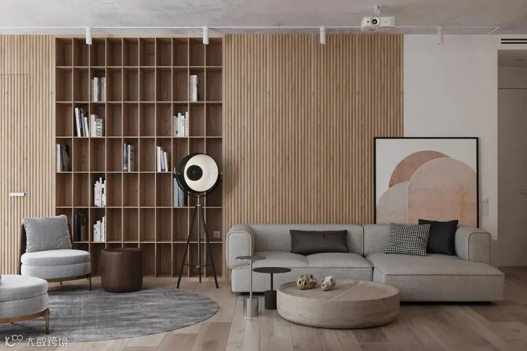 木格栅+饰面,带来更具层次的视觉艺术,宽窄有序的比例线条,让空间拥有了独特和时尚感。