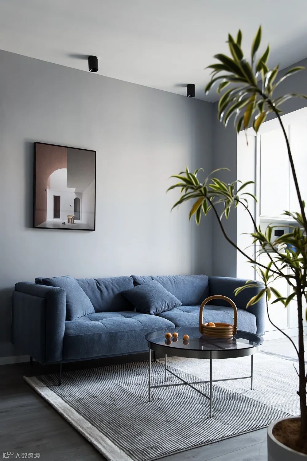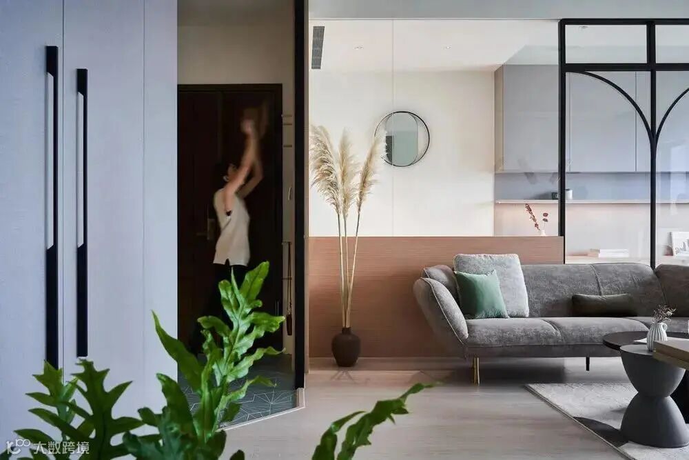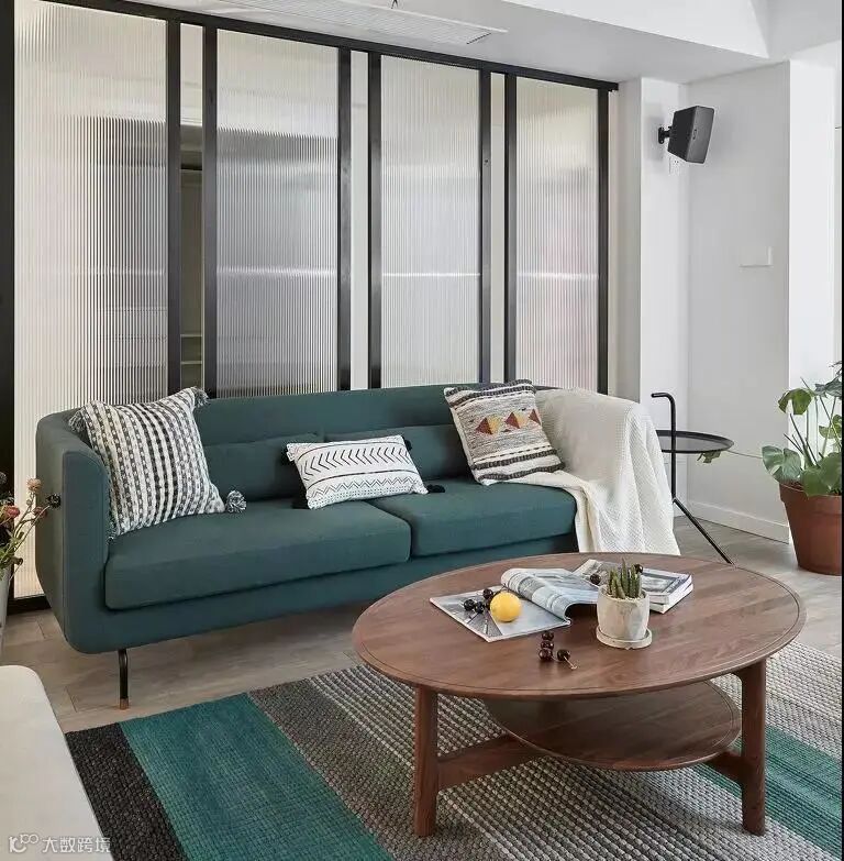 在沙发后利用玻璃隔出一个独立的空间,可以是书房/卧室/餐厅等。既让沙发有依靠,又不影响采光。