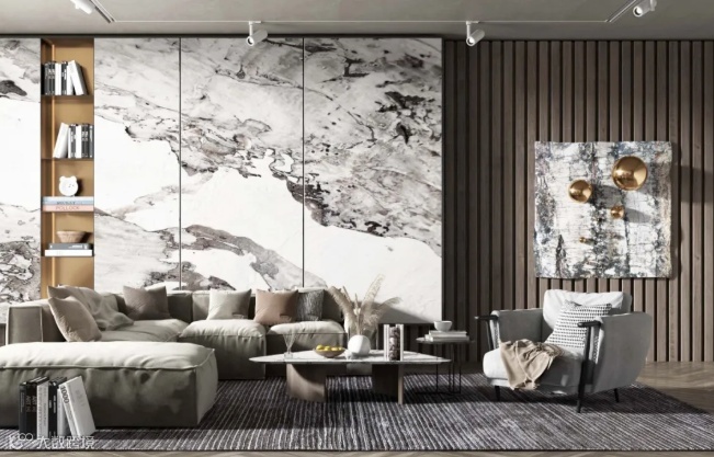 自然纹理的大理石墙面装饰,可以整墙设计,或与其他材质结合,创造出多维的艺术美感,简洁而大气。