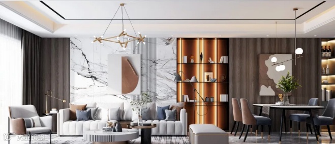 能呈现木质感、岩板、大理石、布艺、皮革等不同装修风格。设计师可以根据需要呈现不同的效果,创造无限可能: