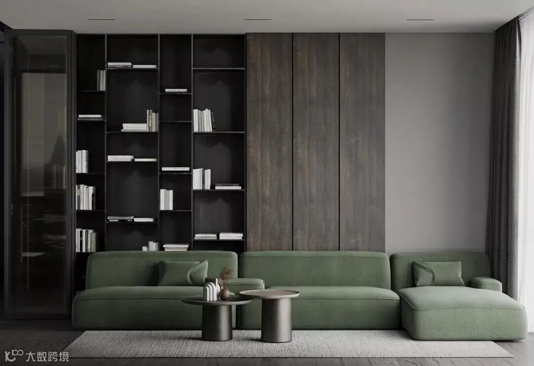 沙发往前移30cm左右,留出柜子的空间,做藏书架还是展示柜使用,都非常合适:
