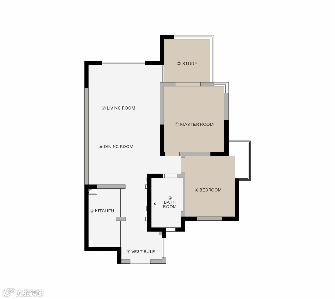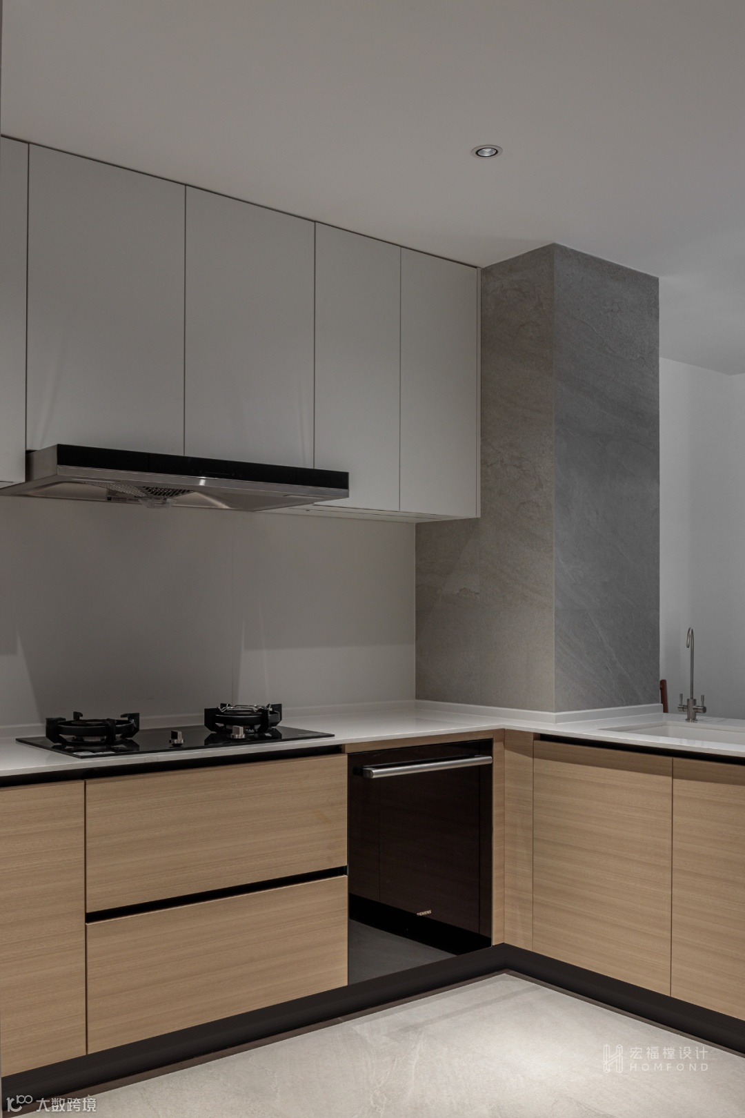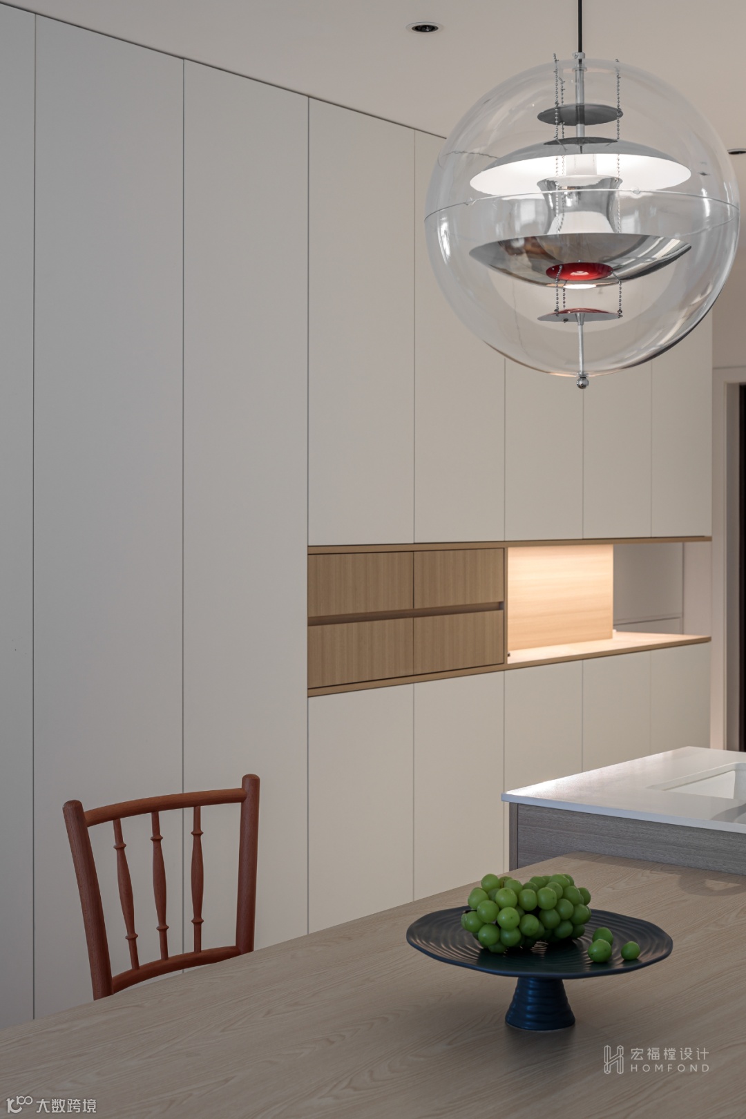 开放厨房空间的同时也最大限度扩大入户的面积与视野,优化原始被墙体封闭后的局限性。