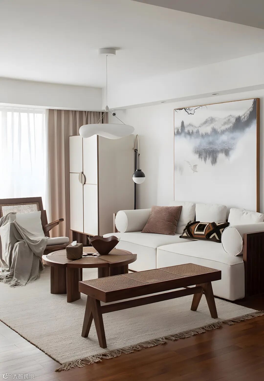 无论是椅子,柜子、桌子,或是地面装饰材料,木质材料造型贴近自然,色彩沉着稳重,都给人一种天然、典雅的感觉,既复古又符合中国风家装的审美特点。