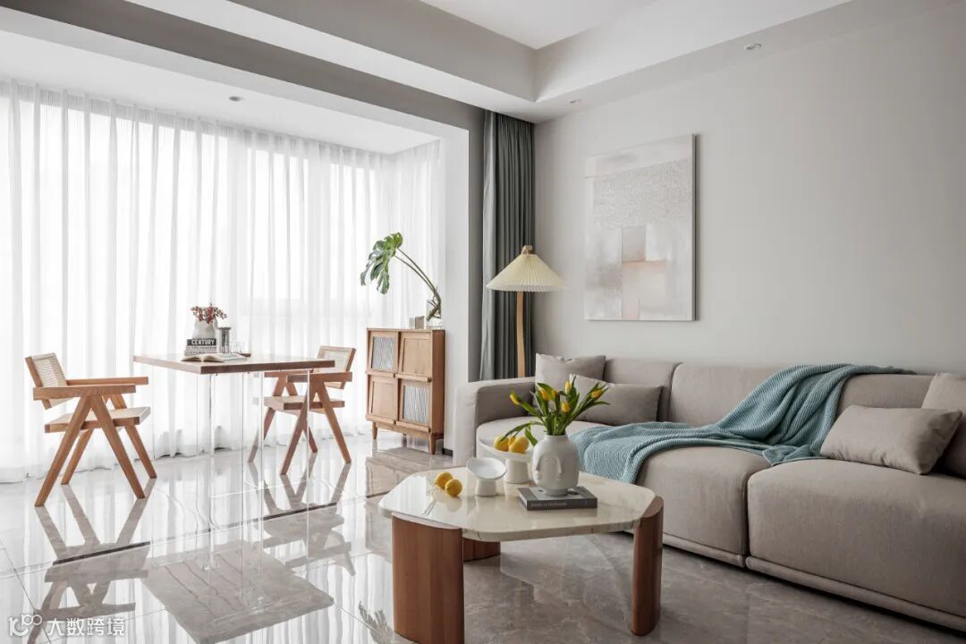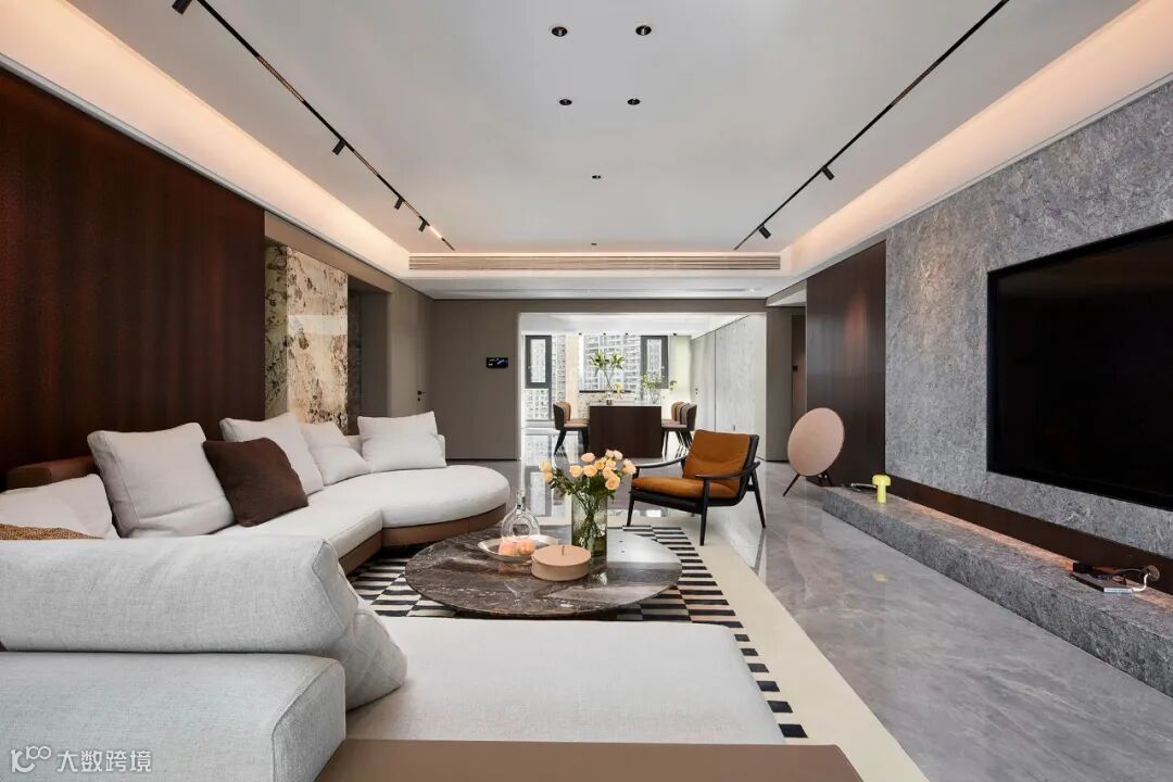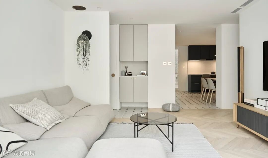 客厅要懂得利用墙面垂直空间,统一定制柜体,不仅能够让空间利用更加合理,同时看起来更加协调。