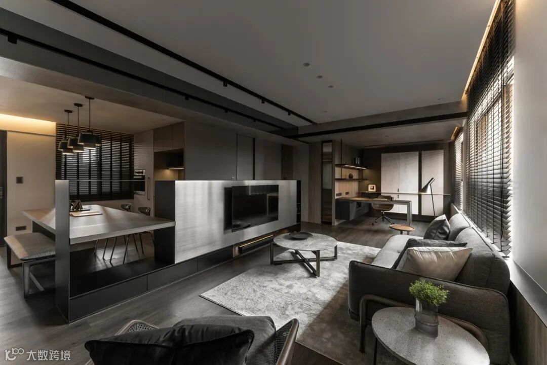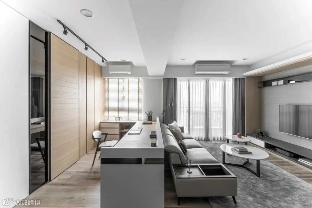③靠吧台,沙发吧台/书桌连接,实现多功能;