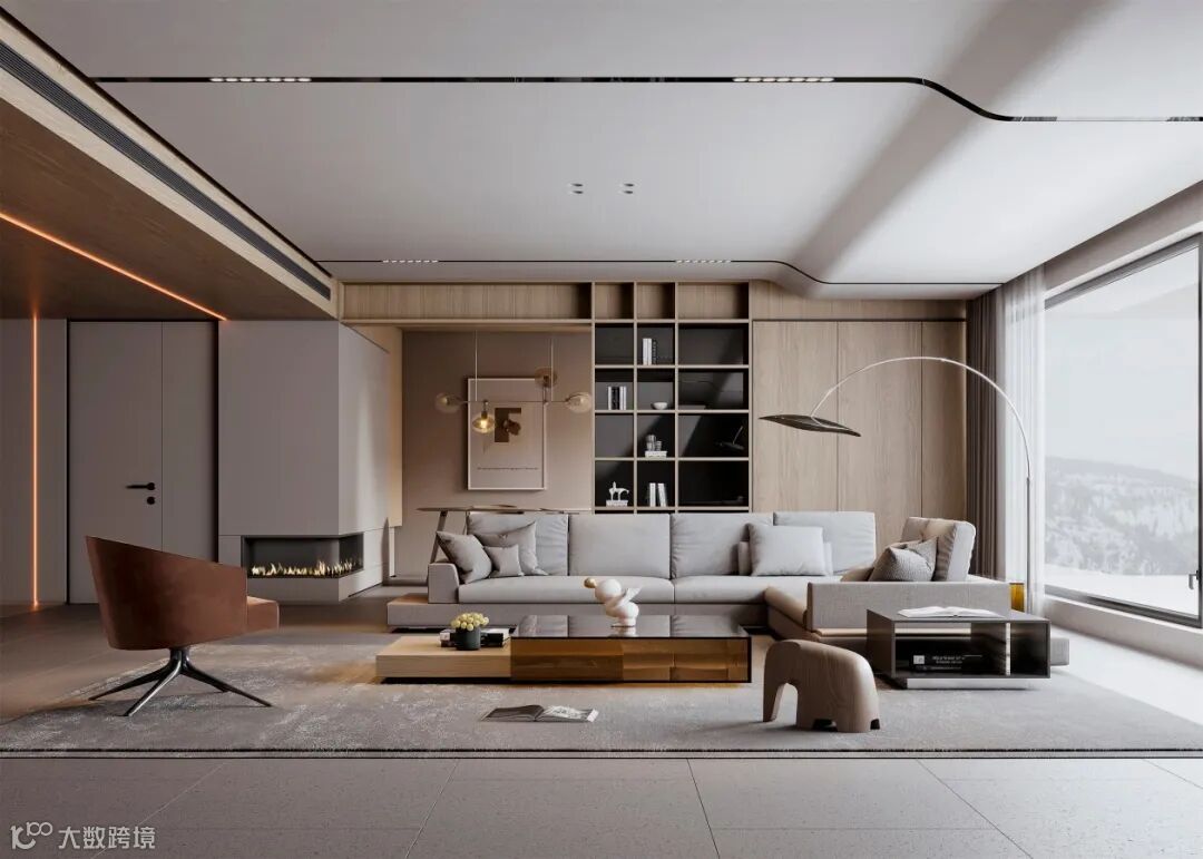 ①沙发不靠墙,所需要考虑到的是围绕在这个圈子的行动动线,所以,排线上要提前做好规划;