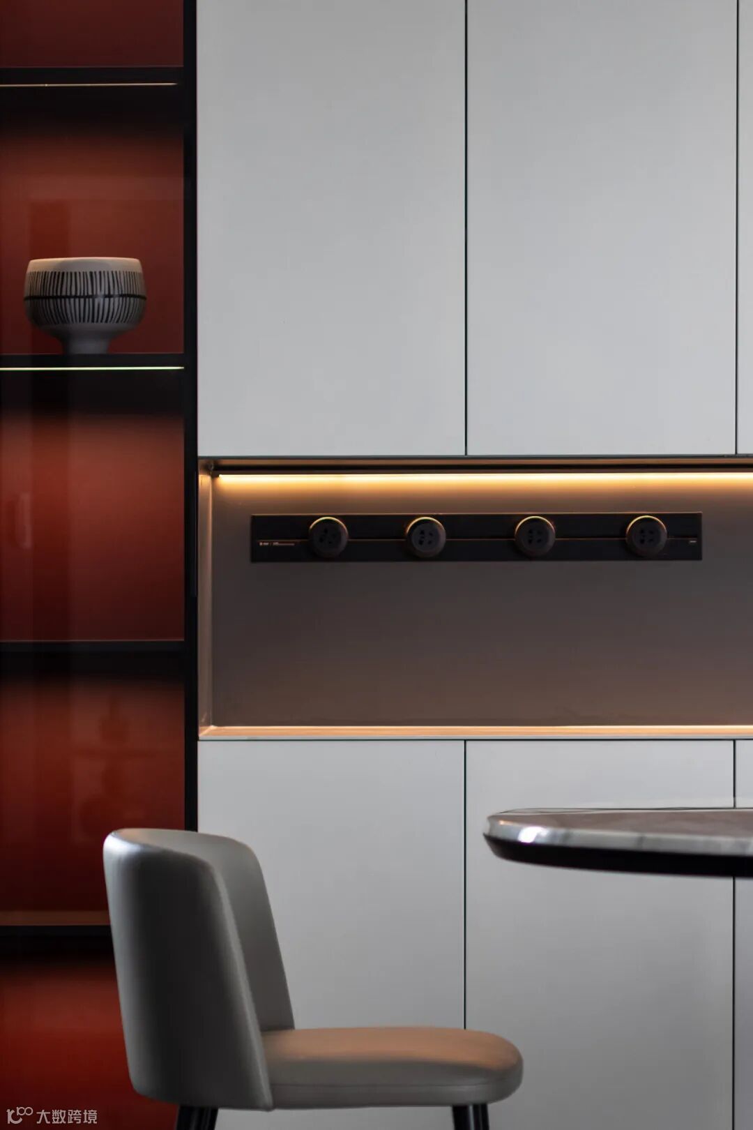 具有收纳功能的餐边柜是餐厅的重要家具,可以作为厨房功能的延伸,不仅能增加就餐氛围,更是提升空间利用率的利器。如果餐厅位置不足,可以考虑靠墙设计几个开放性搁板,方便临时储存东西。