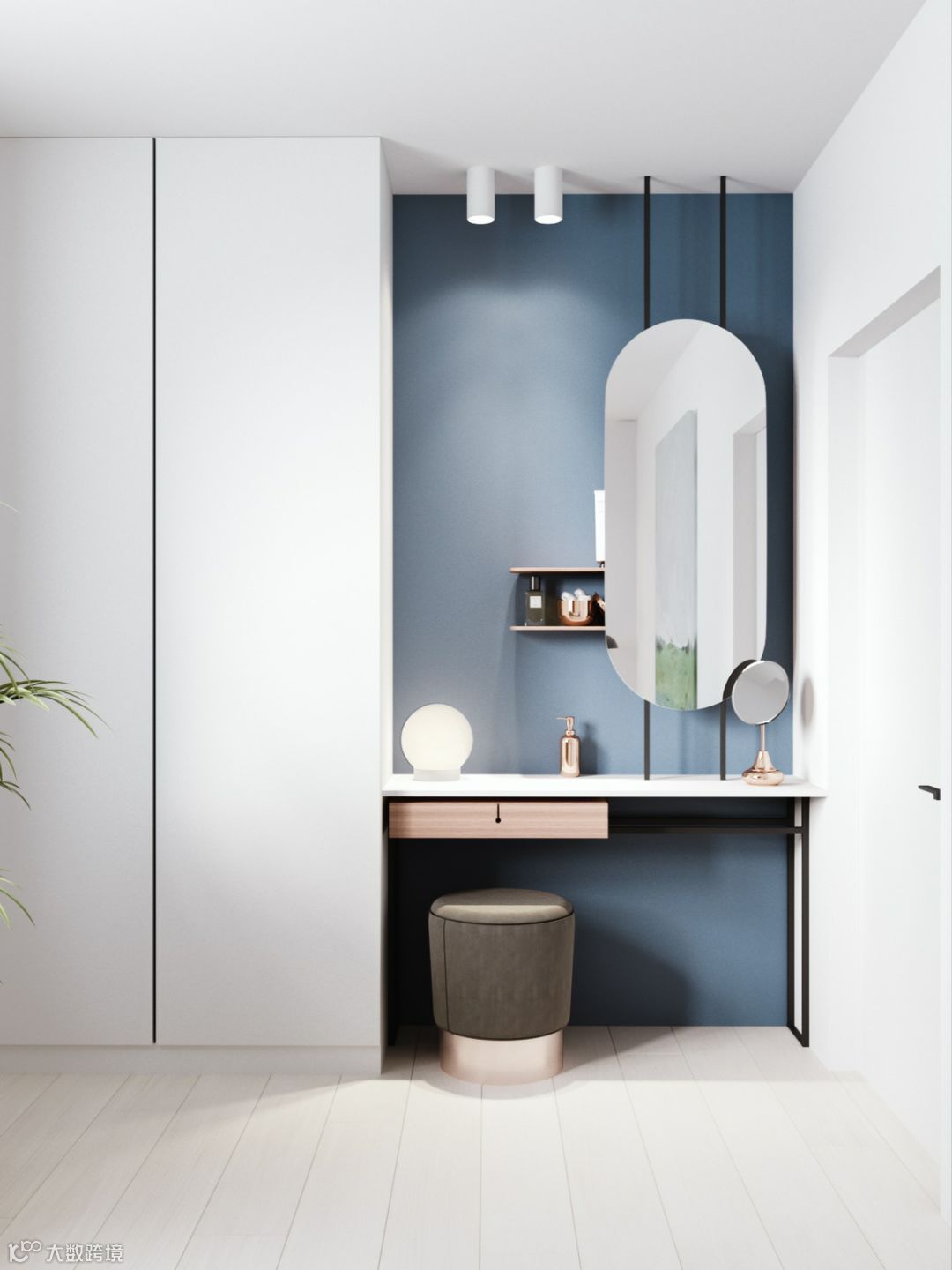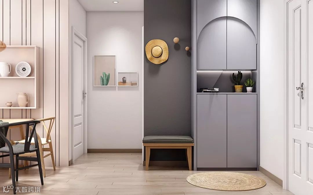 门厅是连接室内与室外的桥梁,在门厅处打造一个高柜,方便存放鞋子、外套、钥匙、手提包等,这样可以把杂物统统隐藏起来,还门厅一个清爽环境。