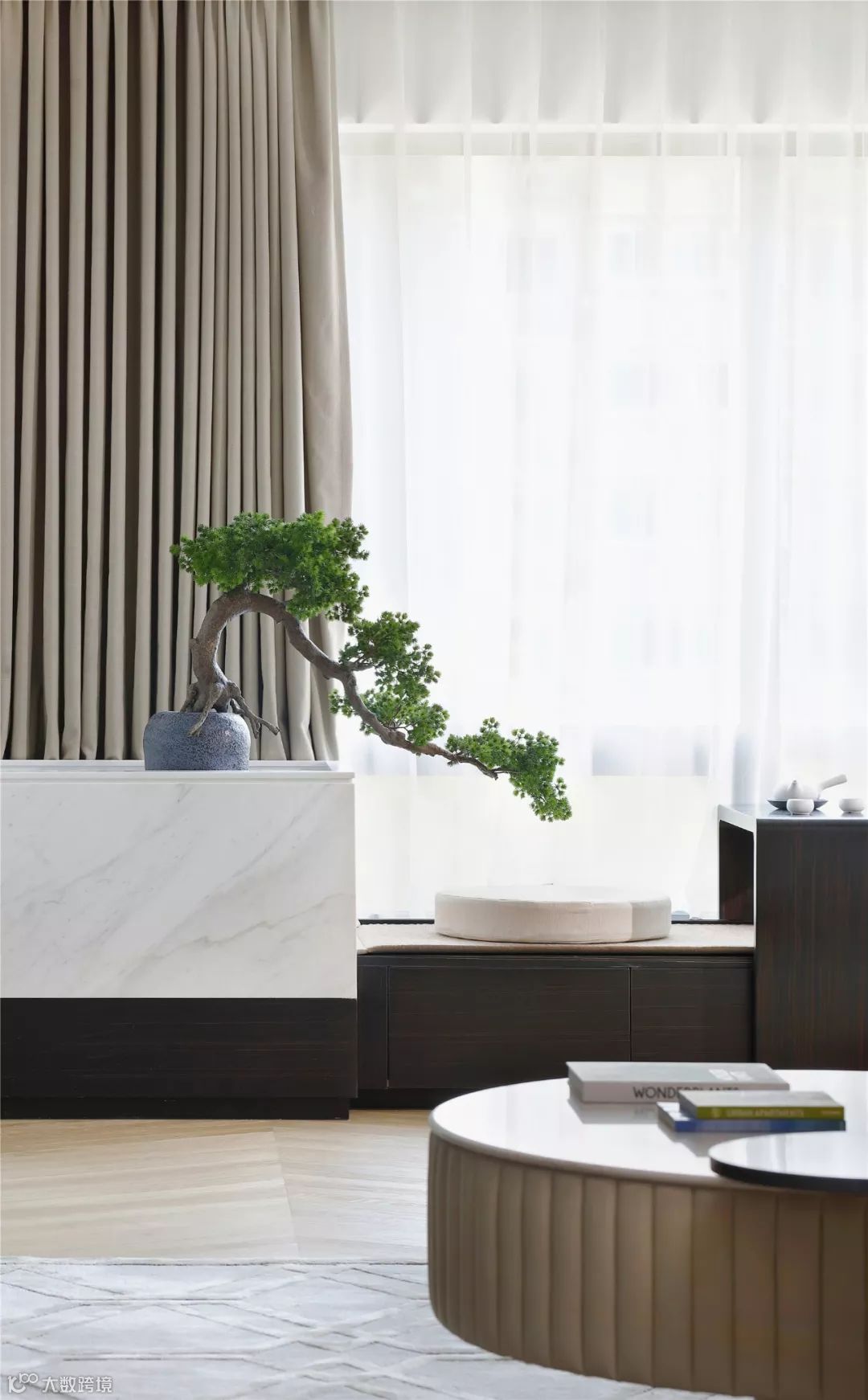 在飘窗的两侧或下面打造一个飘窗柜,不仅可以收纳物品,还可躺可卧,打造出一处不可多得的休闲角落。