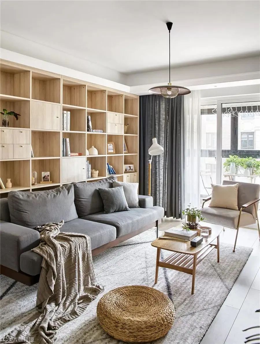 开放式与封闭式相结合。沙发墙上放满了各类书籍,坐在沙发上就能享受到轻松的阅读体验,令人自然惬意而舒适。