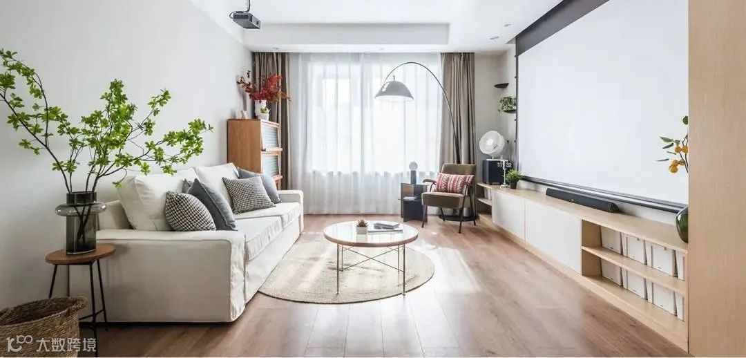 白墙当幕布。经济又实用,矮柜可以收纳书籍、相框、装饰品等等,在家里就可以享受精彩的视觉感,如同在电影院一般。