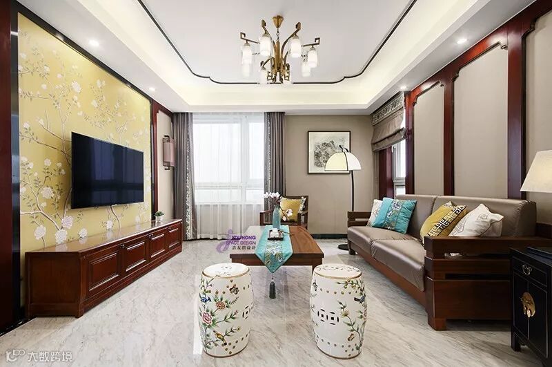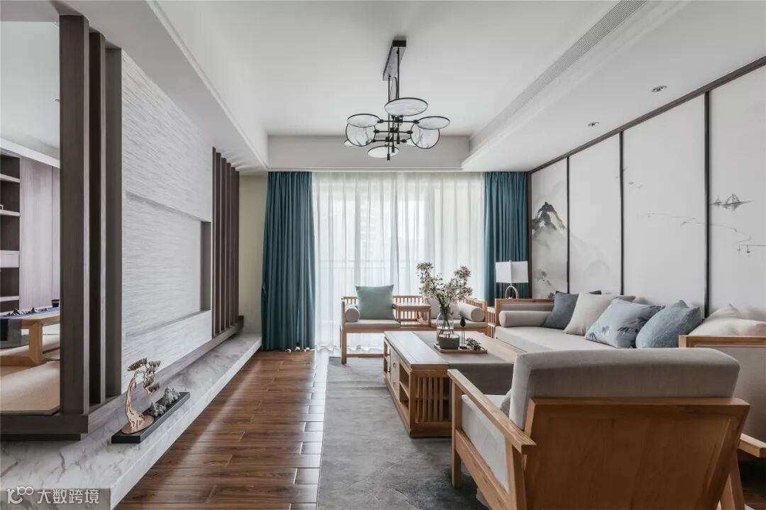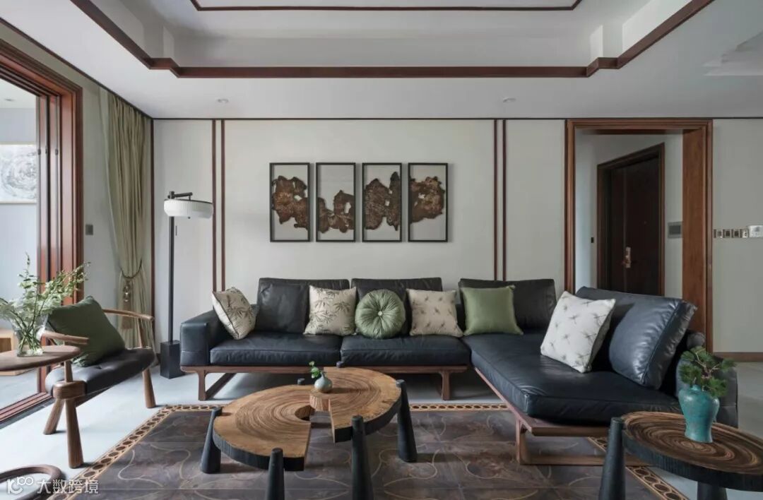 实木沙发是中式风格的常见搭配,同样把实木沙发运用到新中式风格的客厅里面,效果依旧是非常端庄档次的。
