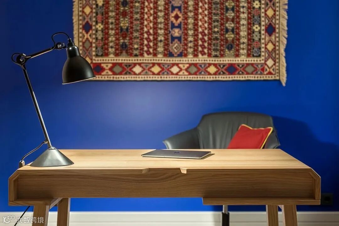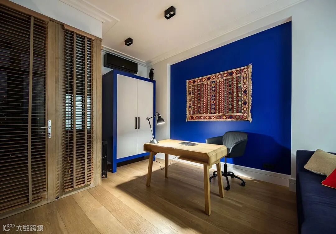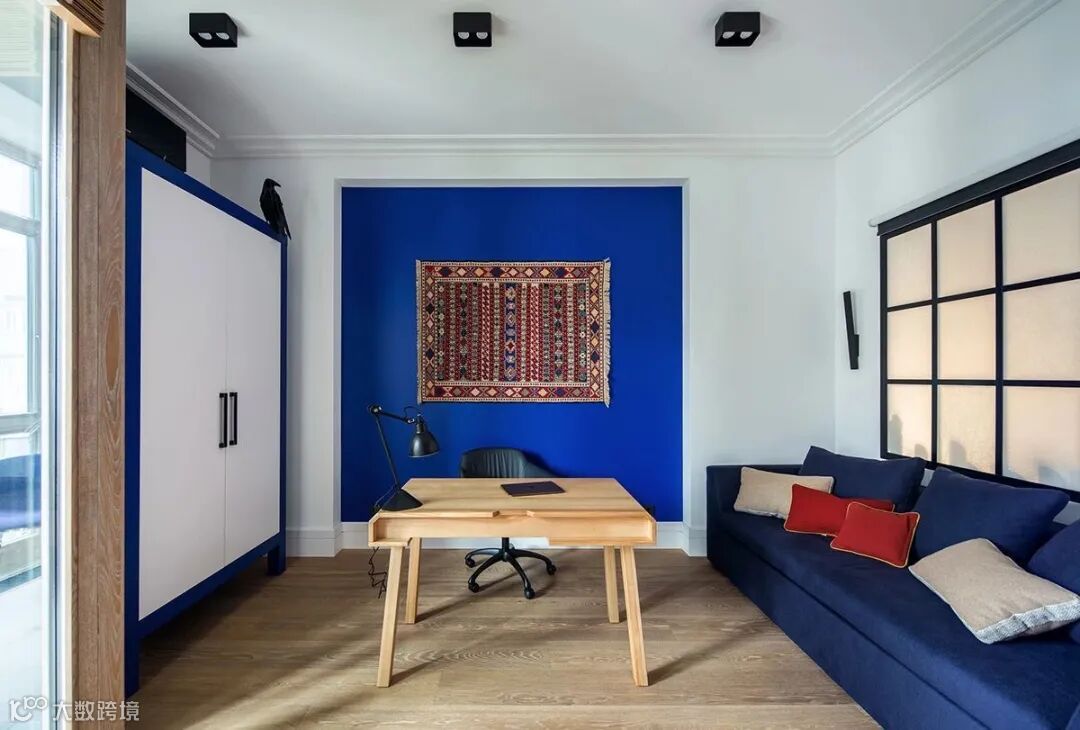 大面积白色搭配少许主题普鲁士蓝;