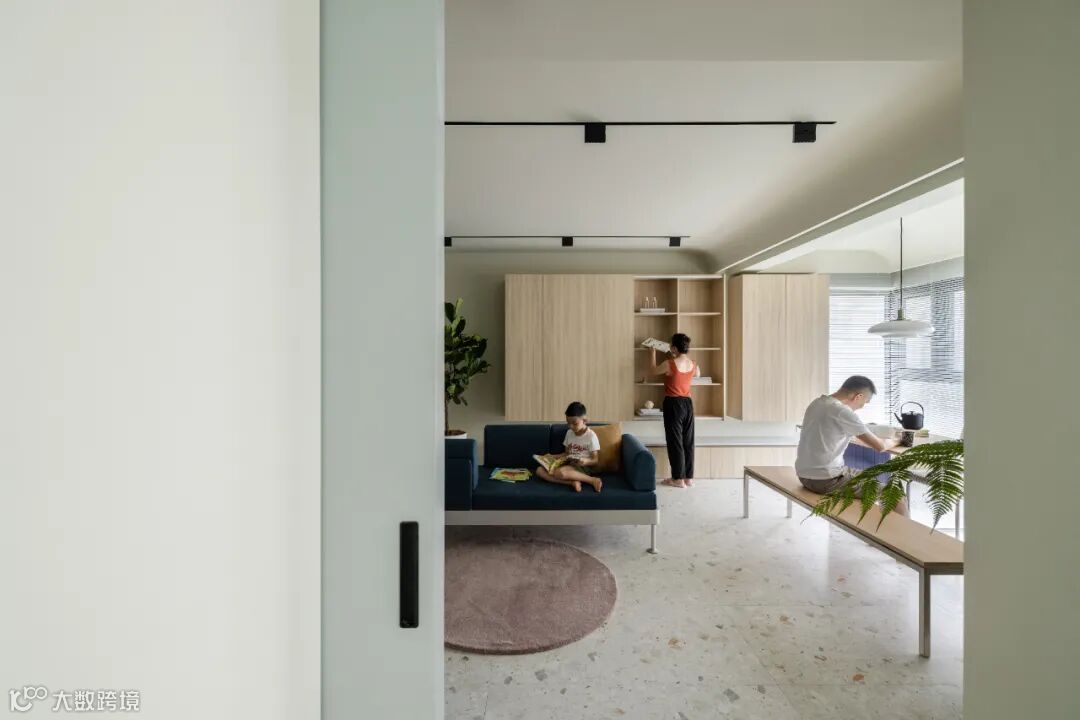 完成了玄关的回家例行后,转身就可以来到客厅,家人的生活脉络缓缓呈现在我们眼前。