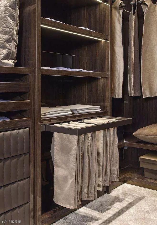 另外,如果你是一个非常注重细节的人,还可以增设领带架或升降衣杆,把所有关于折痕的顾虑都排除在外,为自己的衣帽间再添亮点。