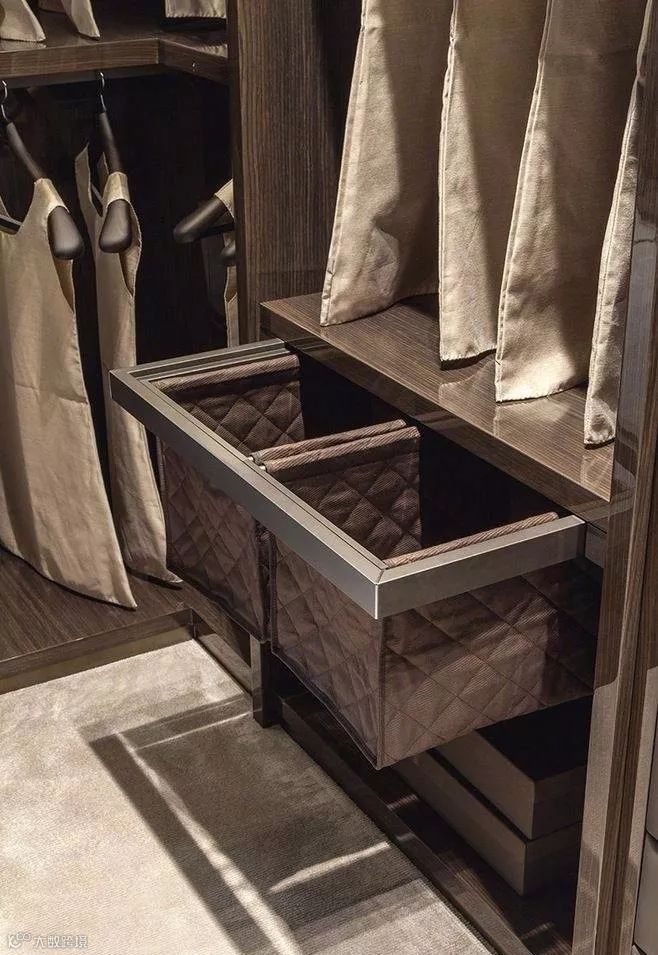 脏衣收纳篮:将待洗衣物归类起来,完美地隐藏于推拉抽屉之中,视觉上更加干净清爽。(ps:不过要记得及时清洗,不然发出异味就尴尬了!)