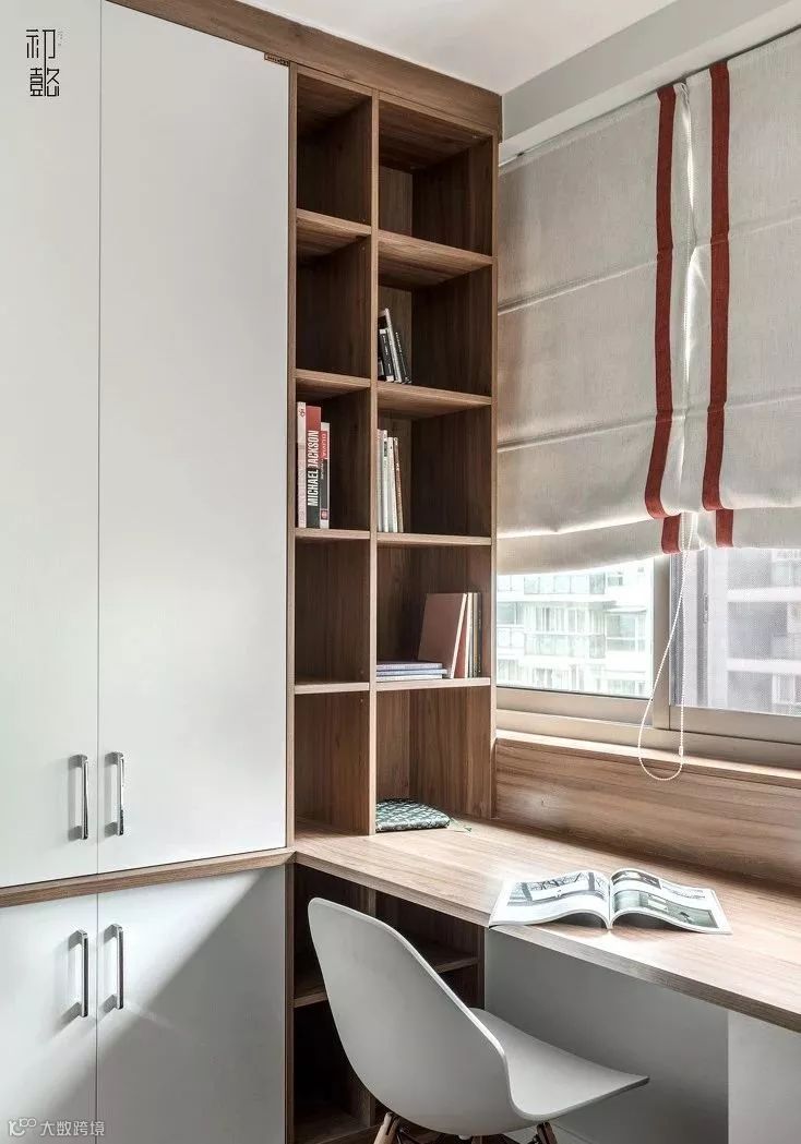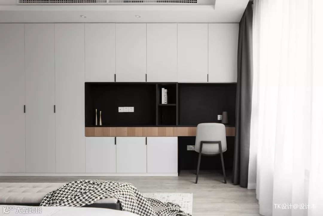 除了上面介绍的3种造型衣柜外,组合衣柜现在也非常流行,可以结合自己的实际需要与书桌、梳妆台进行组合设计,实现功能超大化。