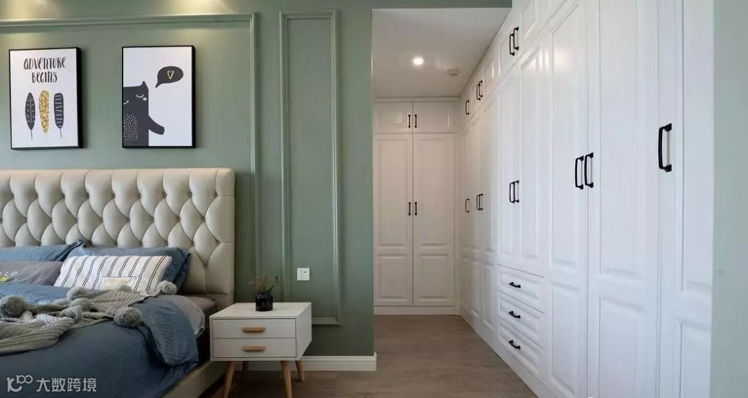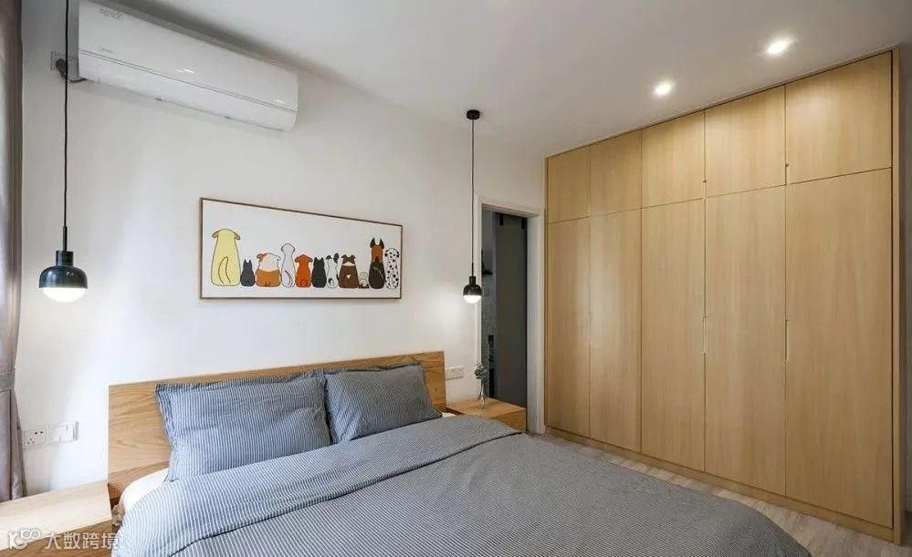 大多数卧室用的都是这种衣柜,一柜到顶能充分利用垂直空间,顶柜可以收纳床品和换季物品,下柜收纳日常使用衣物。