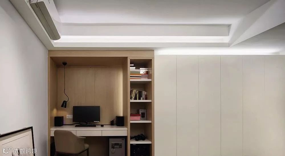 嵌入衣柜,严格来说算是一字型的一种,将衣柜整个嵌入在墙里,很大的好处就是不会额外占用卧室的面积,另外颜值也高。