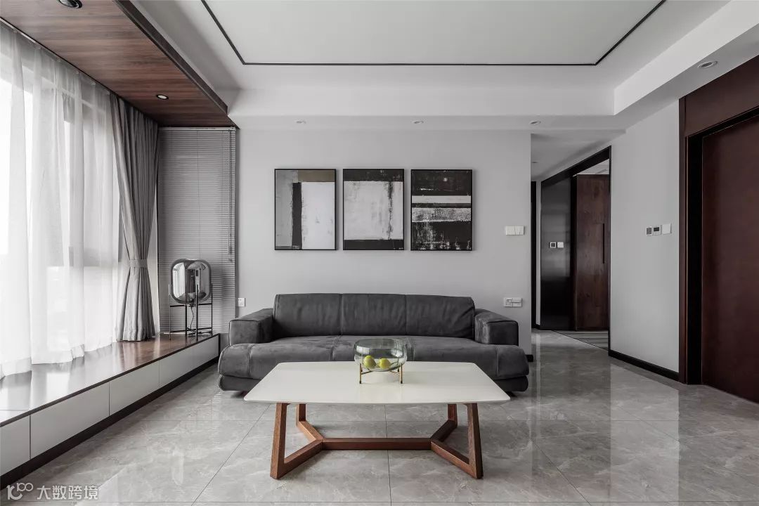 今天分享的是一套建筑面积103平米的现代简约风三居室案例,房子的面积并不算很大, 但设计师巧妙的把客厅和餐厅给结合起来,让整个家看起来宽敞了许多。整体以灰色为主的空间内加入了深木色的家具、造型,让这个小窝也变得更有格调感一些。