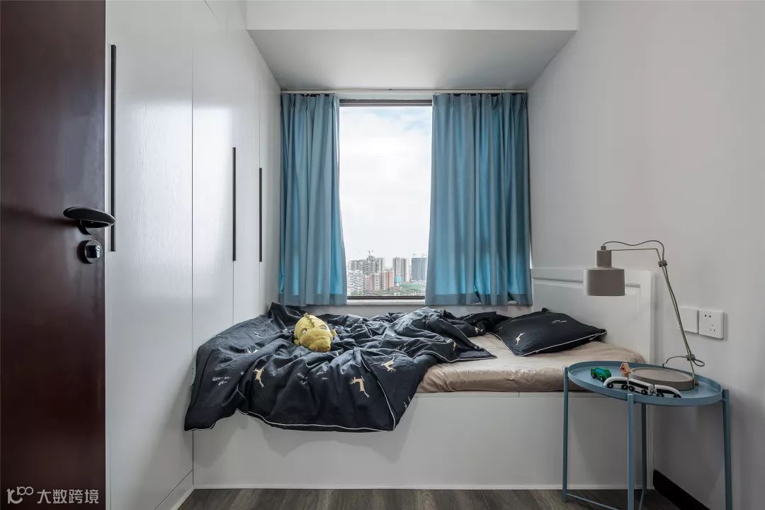 次卧的面积比较小,所以设计师把它改成了榻榻米床组合衣柜的设计,留出的空间还可以摆放一张书桌,以后方便孩子读书和学习使用。