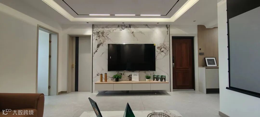 岩板背景+悬空电视柜+欧派木门