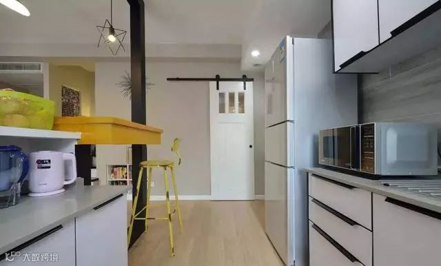 网红款谷仓门作为客卫门,入门处的墙面增添储物空间,或开放或封闭的柜子,灵活以层次感。