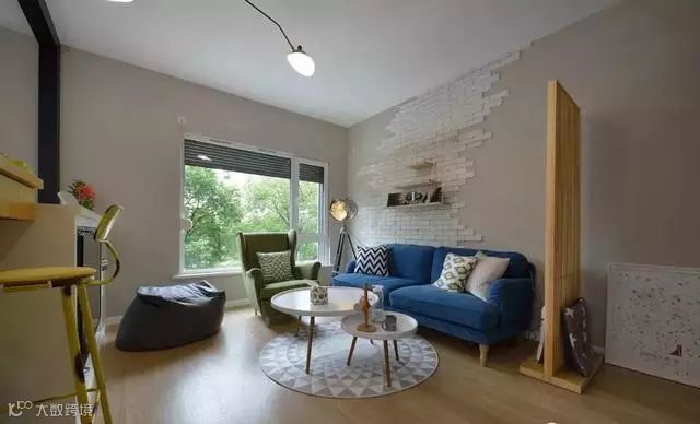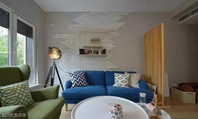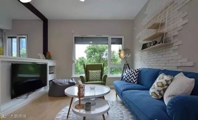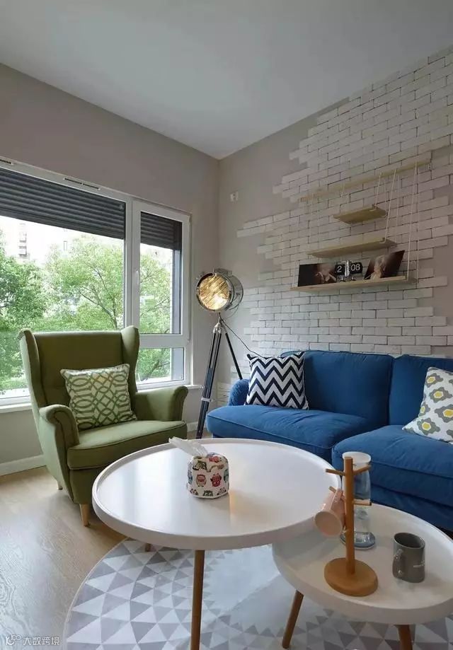 蓝色双人沙发搭配绿色单人沙发,清新朴实。