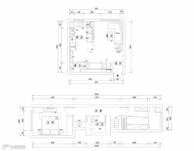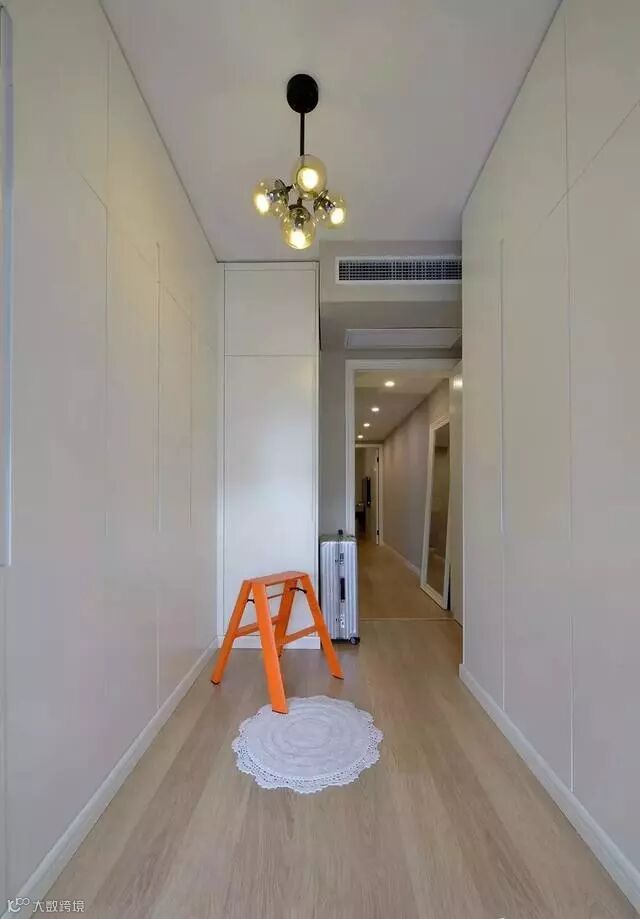 二楼长条形户型,长长的走廊延伸至独立衣帽间,置顶储物柜有着超强的收纳功能。