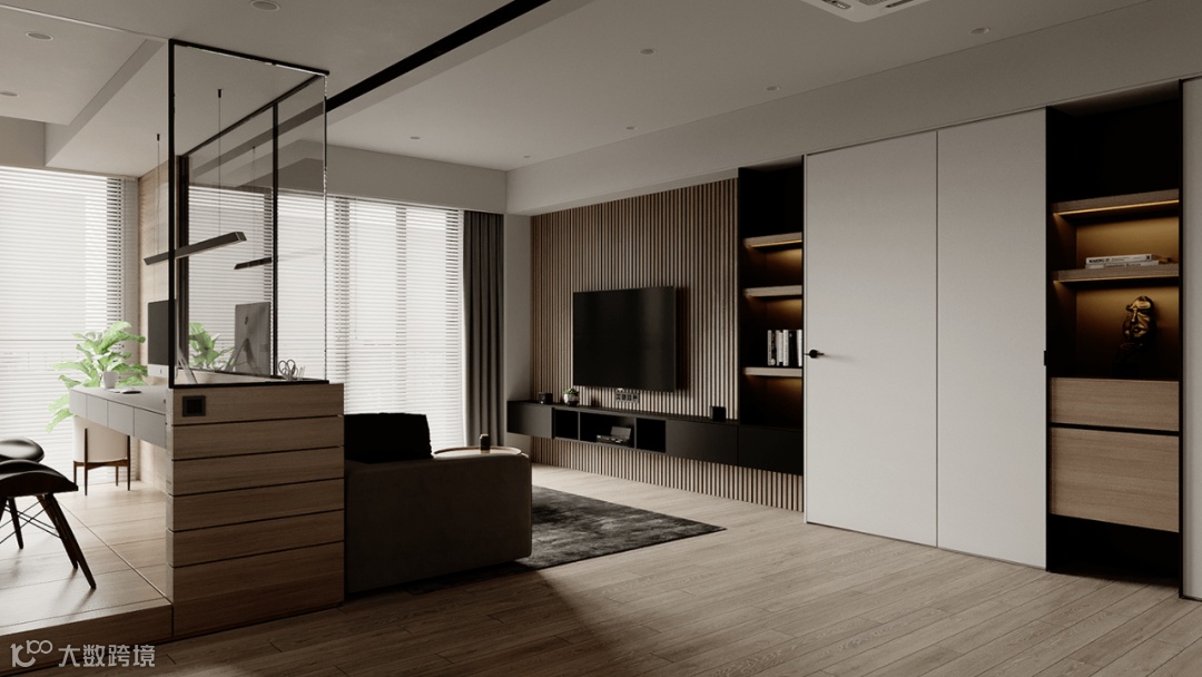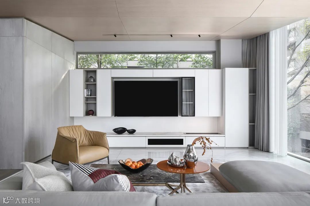 可以把收纳空间放到电视背景墙上。