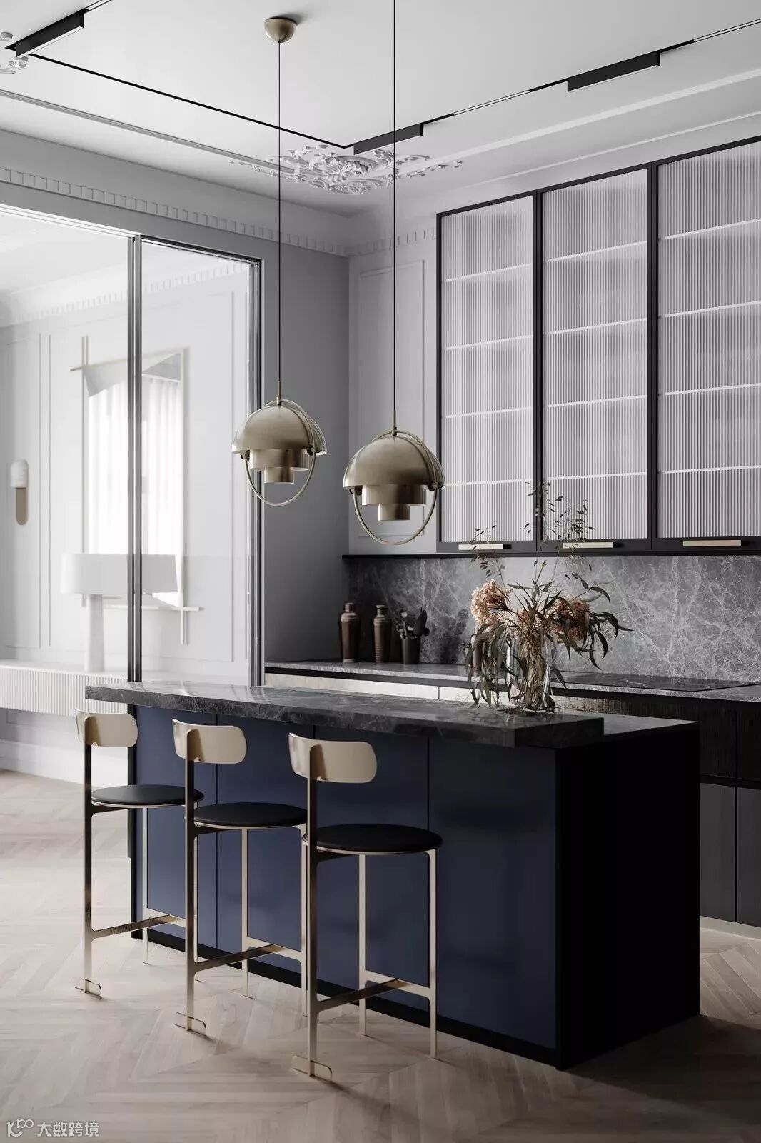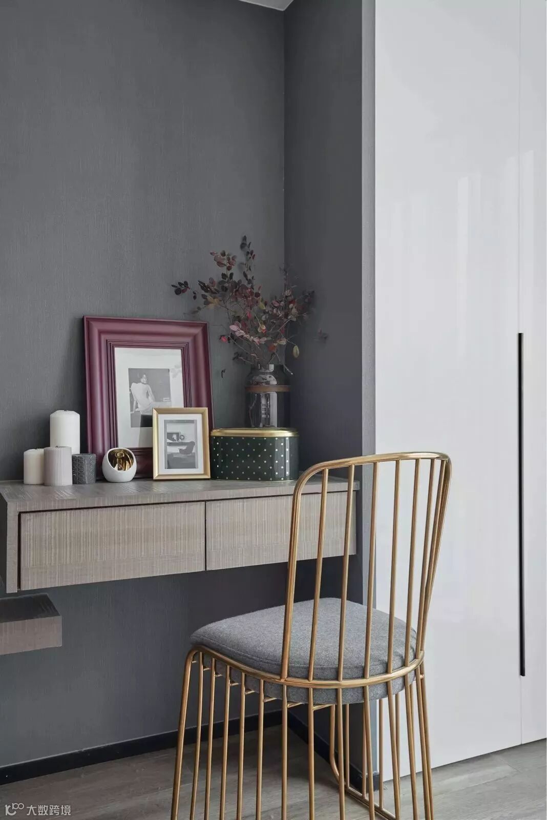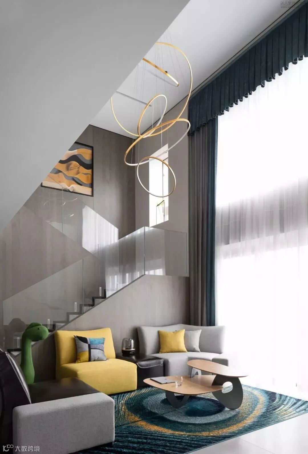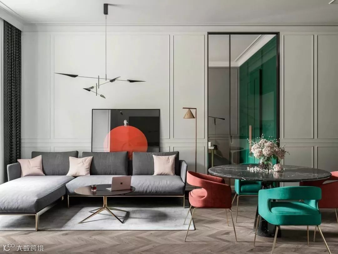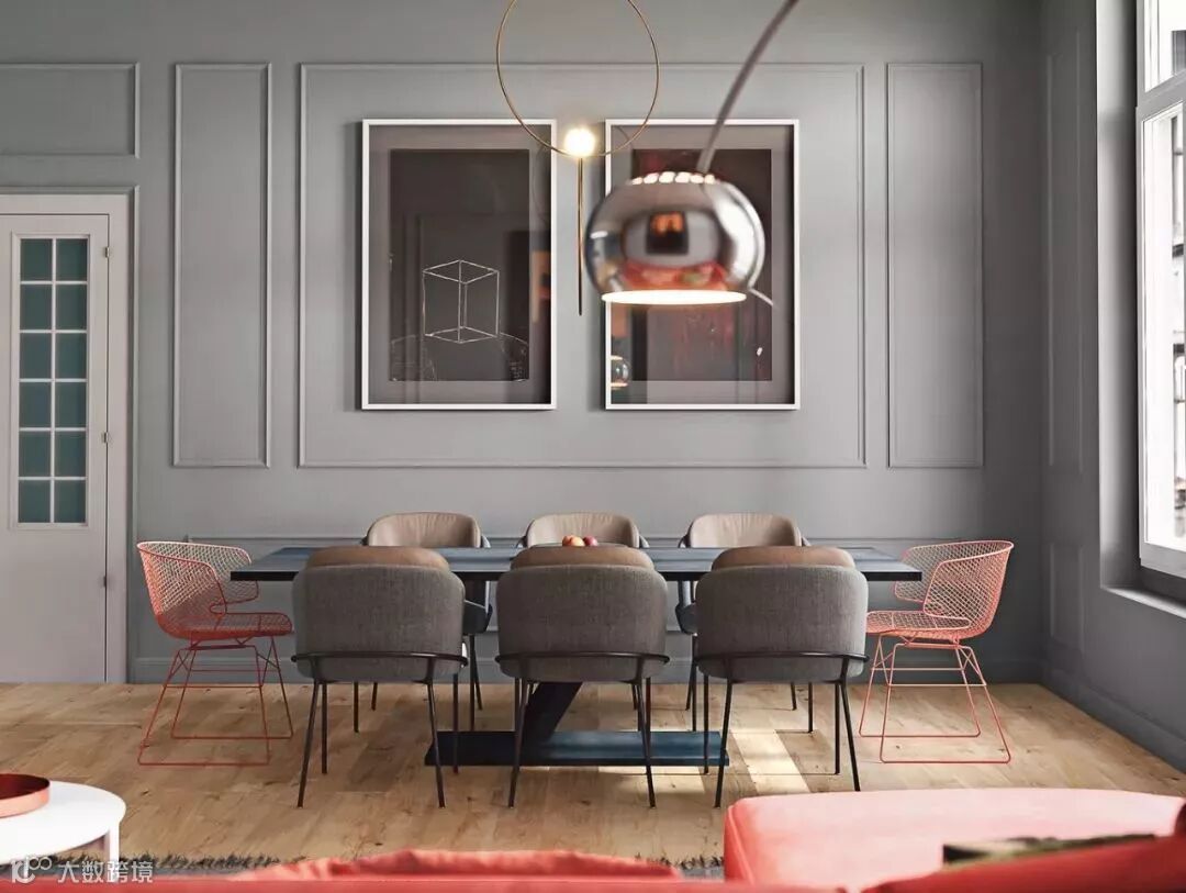 低明度的高级灰,搭配高明度的色彩,沉静的空间仿佛瞬间灵动起来,充满惊艳感。