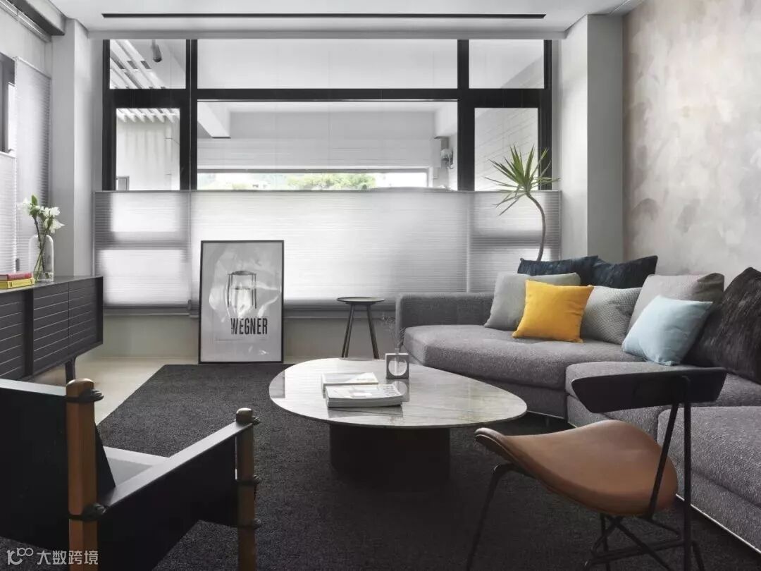 在室内设计里,“高级灰”色系搭配出来的感觉柔和宁静,永恒,让人只想扎进这温柔乡。