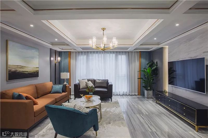 窗帘选择跟沙发相同颜色的窗帘,非常适合纯色的沙发,打造出和谐的客厅氛围。同色系搭配,因为色彩上的极简,会自然给人一种寂静肃穆的感觉,自带庄严感。所以,同色系是非常容易打造出“高级感”。