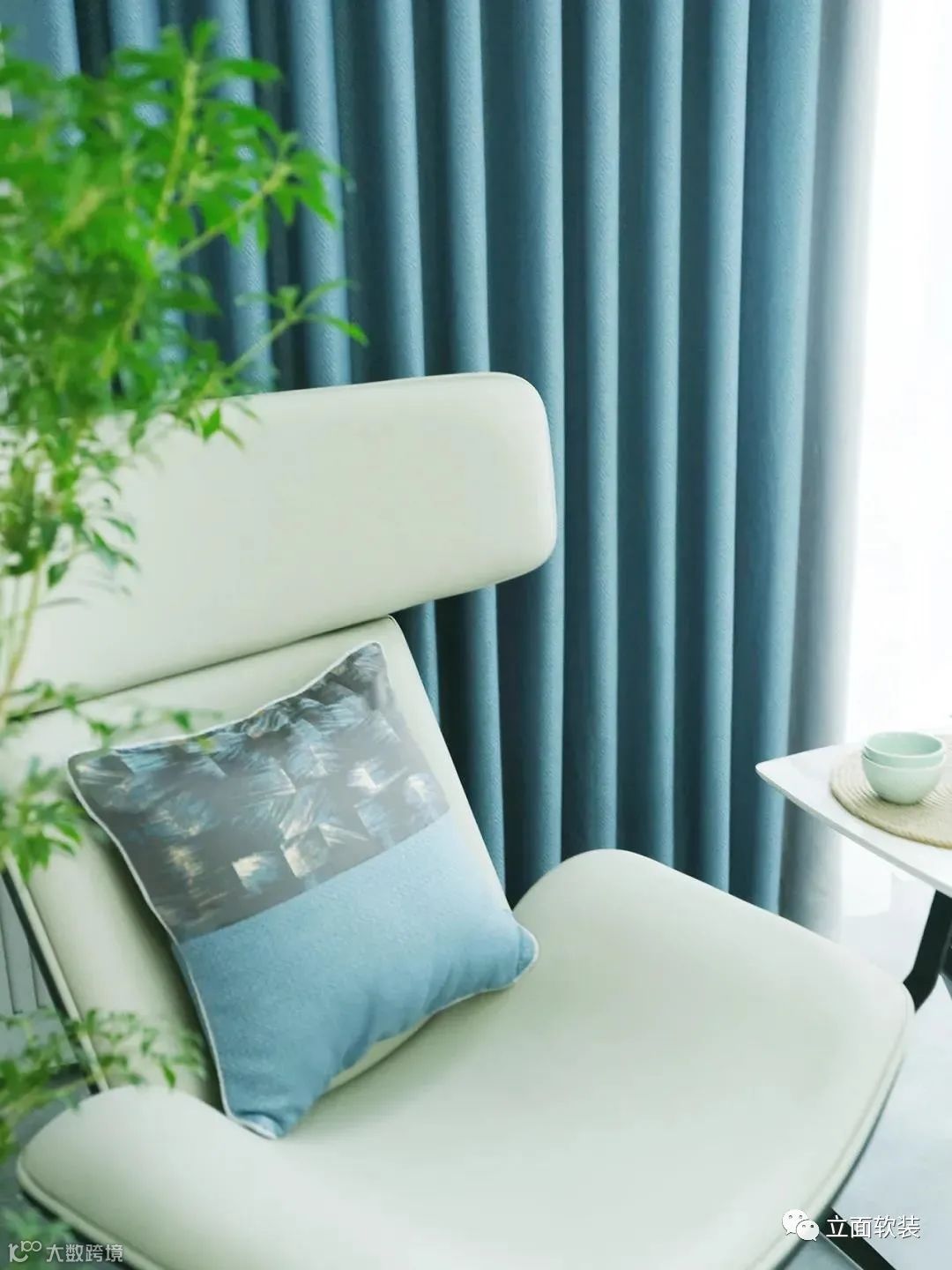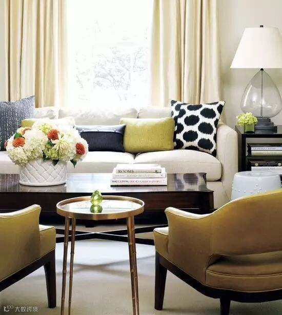 窗帘花色与客厅的沙发、单人椅或是沙发上的抱枕相同,看似漫不经心,却处处透着精心的设计。
