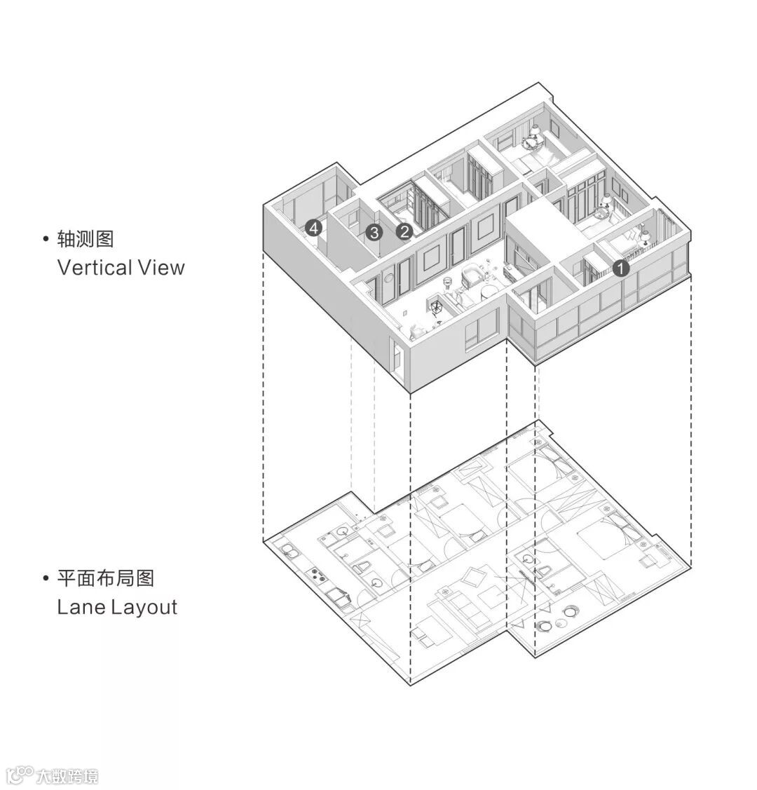 ▲ 灰调简约而富有质感,加之金色的勾勒,细节之处洋溢着优雅迷人的气质。