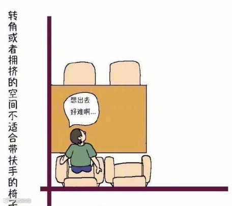 转角或者拥挤的空间不适合带扶手的椅子。