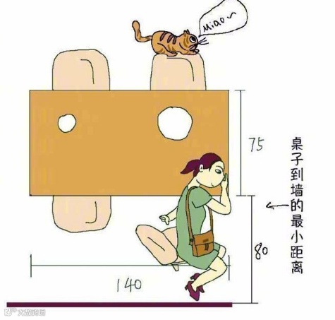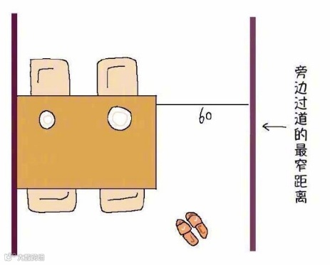 桌子离墙过道的距离最小60cm