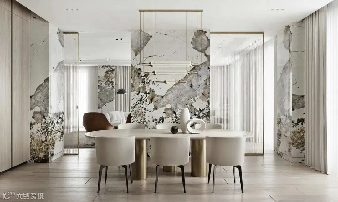 大理石,自带贵族气质,在地面、背景墙,也可以是茶几、餐桌的台面。
