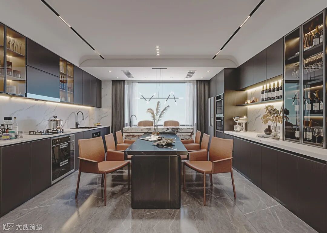 镜面,巧妙地减少空间的沉闷感,将场景反映出来,在细节处打造亮点。