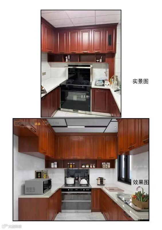 中式厨房实景图与效果图对比