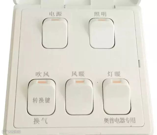 卫生间浴霸开关,一般都是浴霸厂商的集成开关,这个不需要自己买,浴霸自带,装修的时候只需要根据要求留好线就行,