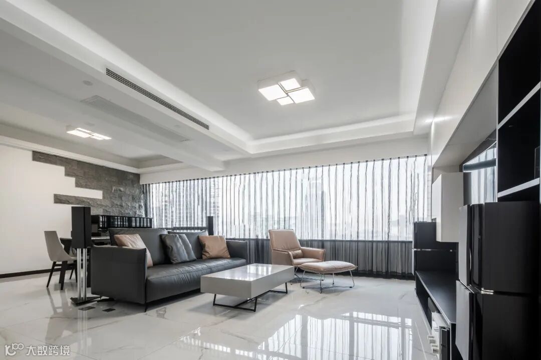 另外,吊顶上安装黑色或金色的装饰条,线条感会更强!