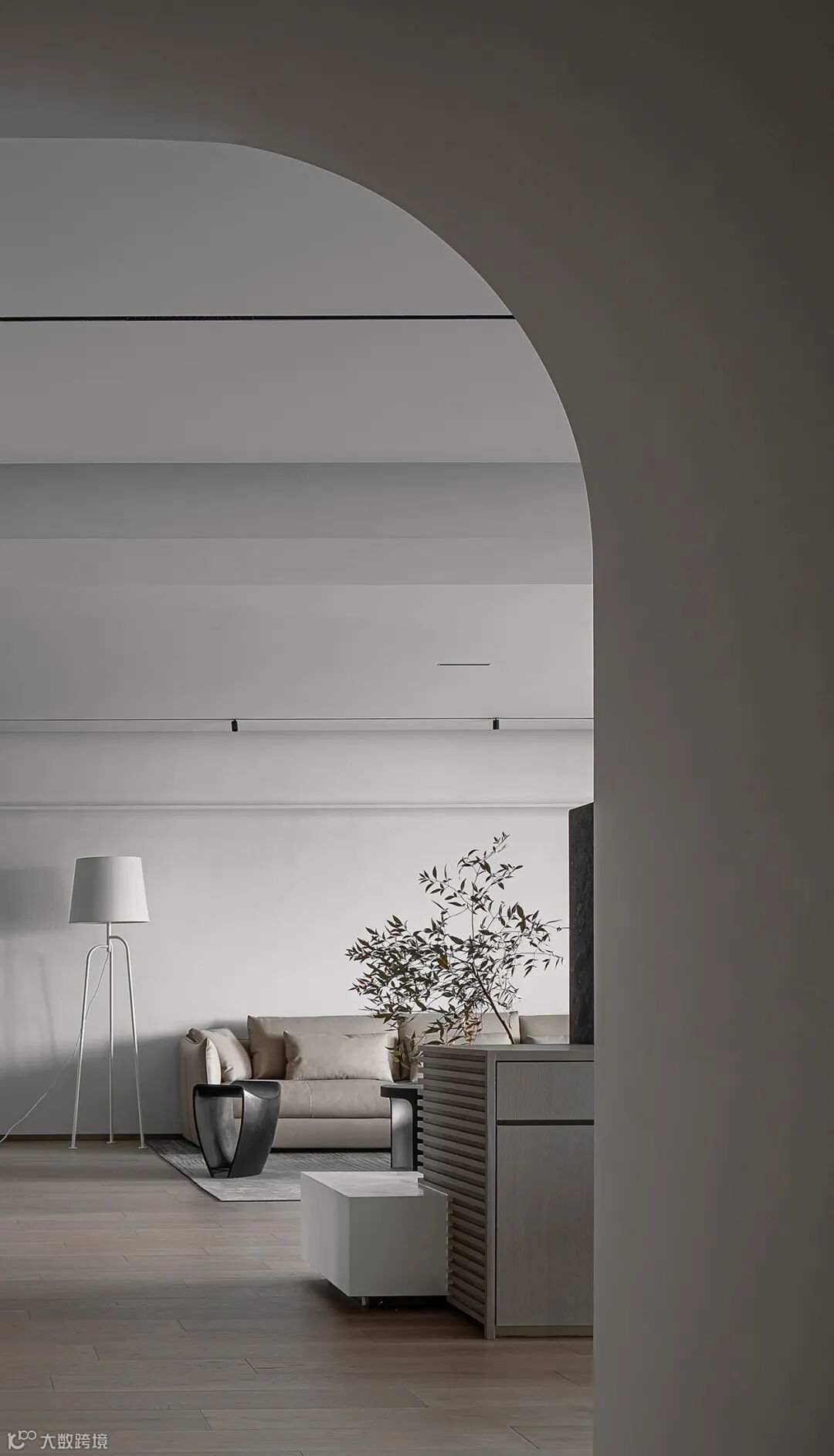 ▶ 弧形的沙发、圆形的茶几、拱形门等,让空间更加圆润饱满: