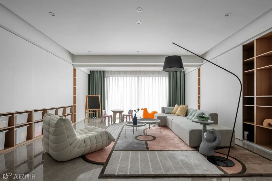 大面积选择浅色系搭配,降低空间的填充感,而且很好搭配家具: