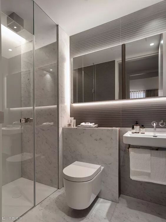 1、运用好灯光,壁镜顶部要装灯,这样即使在顶灯不开的情况下,镜前灯的光线也会很好地反射到四周的墙面,使卫生间有一种明亮的感觉。