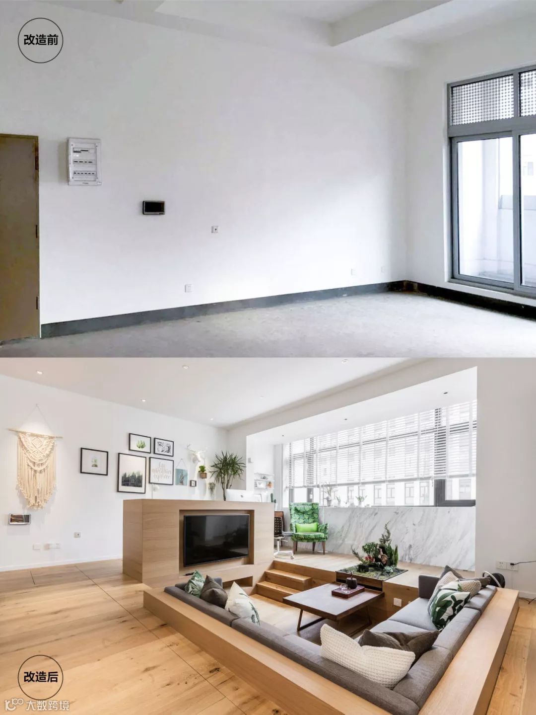 也让客厅顺势变身为时下流行的“下沉式”。