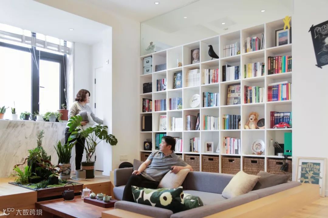 沙发区的背后是一个3米×2.2米的书架,
