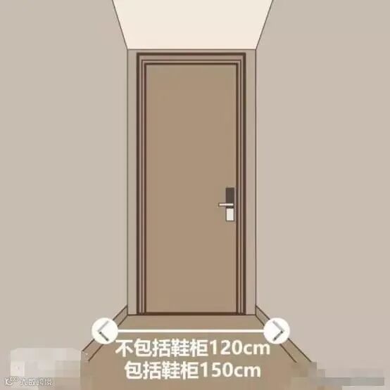 在设计玄关过道的时候,不仅要清楚鞋柜的高度和深度,更要清楚玄关过道的宽度,一般为了保证行走通畅,过道距离要保持在120cm以上,如果再做鞋柜,那么过道宽度需要在150cm以上。