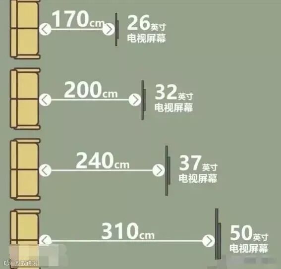 电视尺寸不是越大越好看,越大越气派,最合适你家的尺寸,才是最好的。而且,选择电视机时还要考虑你家沙发与电视墙的距离,太近伤眼、太远影响观影体验,不同尺寸的电视机对应不同的观赏距离。具体参考如下: