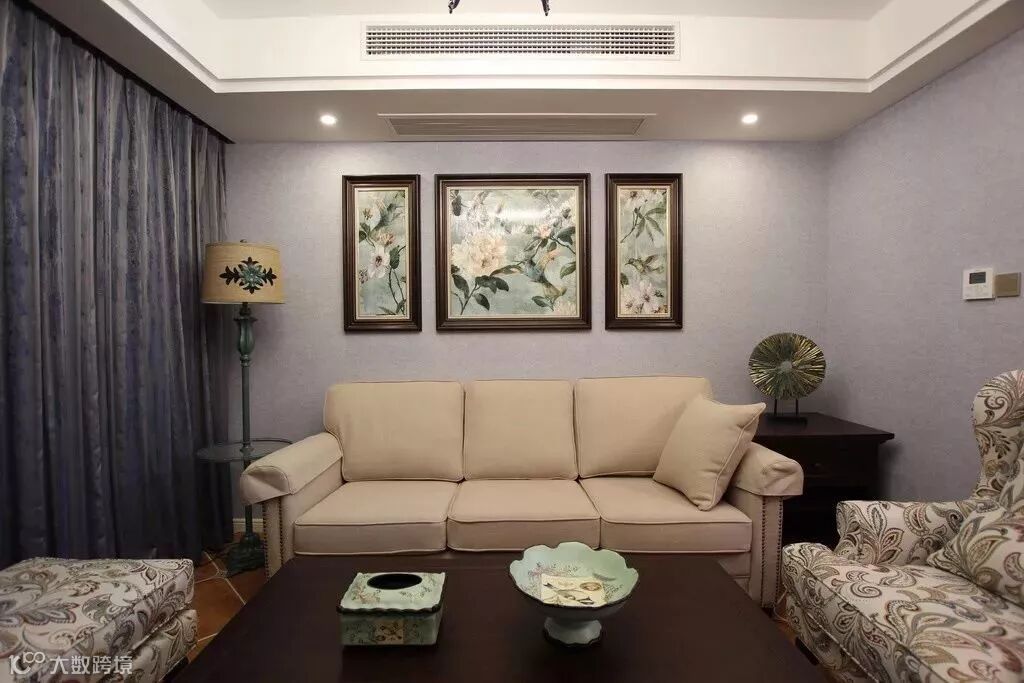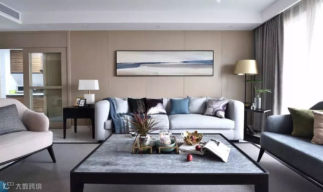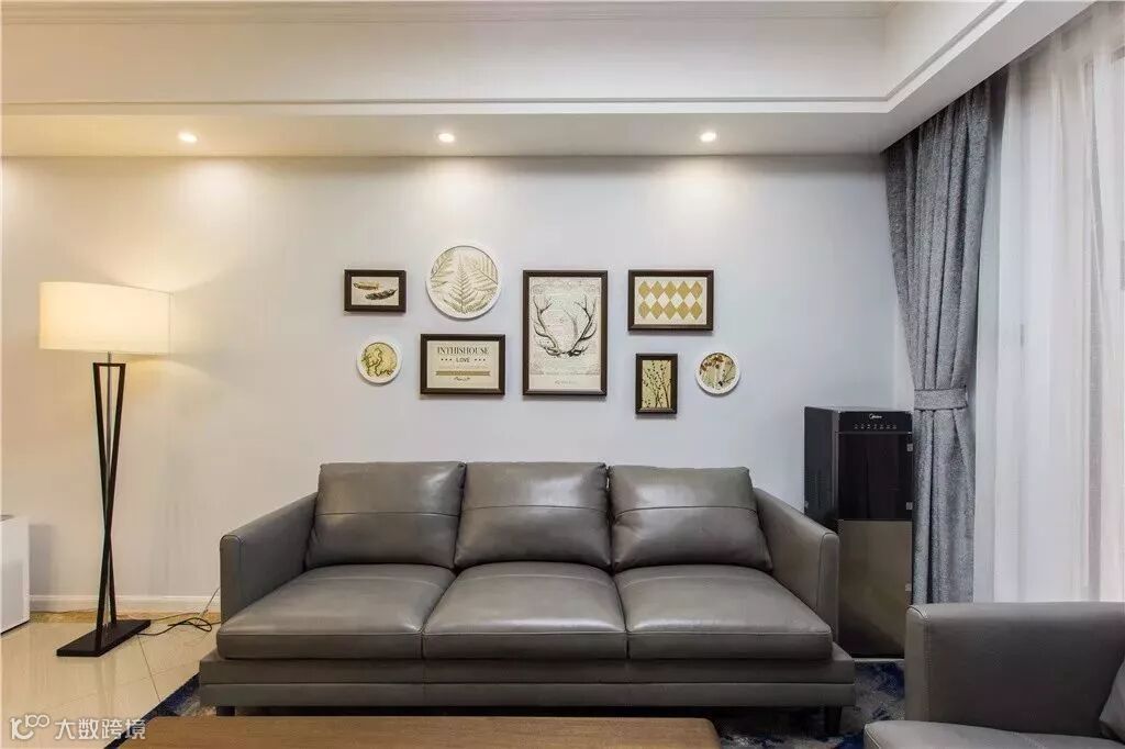 在正面沙发墙上装上壁画